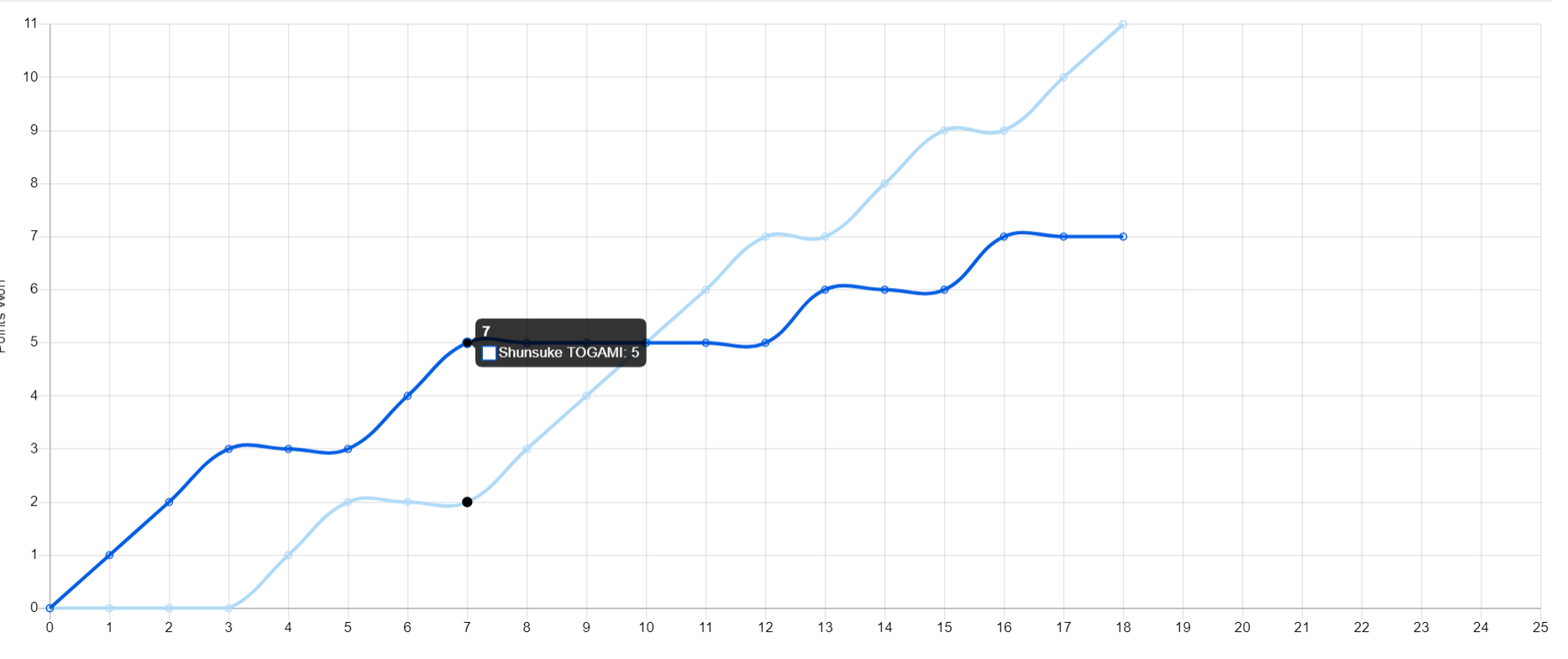 前两局户上都赢得比较轻松,第三局开场户上隼辅5-2领先,他一定觉得这场比赛拿下了,随后户上有些松懈,黄友政立马追到5-5,而且黄友政是一波流7-1,这一波7-1让户上开始慌乱丢掉第三局。
